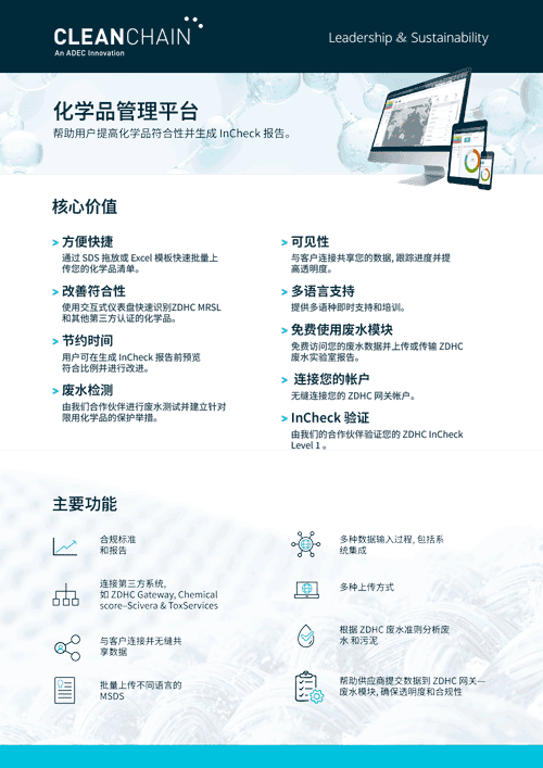 采用CleanChain系统,在很大程度上帮助我司规避了化学品的风险物质, 也大大提高了我司化学品管理方向的工作效率。同时, CleanChain系统的采用提升了客户对于我司的认可度及信任度, 尤其是对于了解或者已经使用CleanChain平台的客户而言。最后, CleanChain促进了我司可持续发展进程。